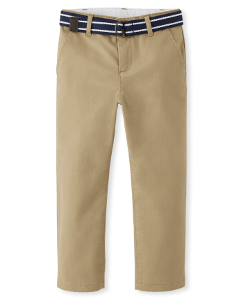 FEATURES: Nanotex® wrinkle resistance, removable adjustable striped belt, front side slant & back welt pockets, belt loops, pre-washed for added softness and to reduce shrinkage