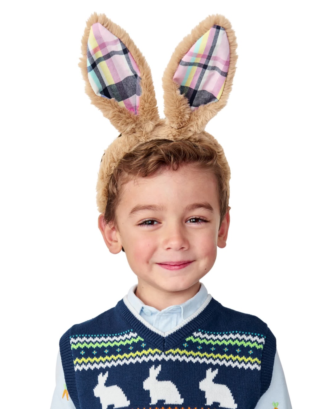 Kids Plaid Bunny Ears Headband - Spring Celebrations - tan